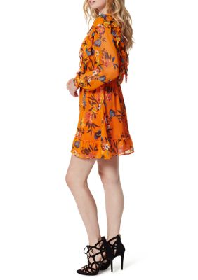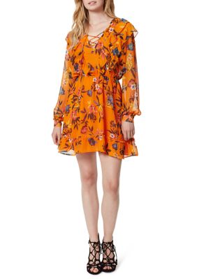 Jessica Simpson Barry Ruffle Lace Up Long Sleeve Dress Belk